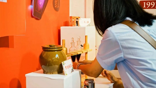 “搖一搖,聽聽夏枯草的聲音”“聞一聞,來自香藥的東方木質(zhì)調(diào)”等奇妙的中藥互動新體驗裝置,讓年輕觀眾獲得沉浸式、新鮮且多元的文化知識輸入。深刻了解夏桑菊的選料講究及中藥配伍中“君臣佐使”的理論,從黑油工藝“滴水成珠”、二天油“黑中透紅”的奧秘中感悟古人對中草藥提煉技術的智慧,引發(fā)他們對中藥文化背后的故事及其意義思考。