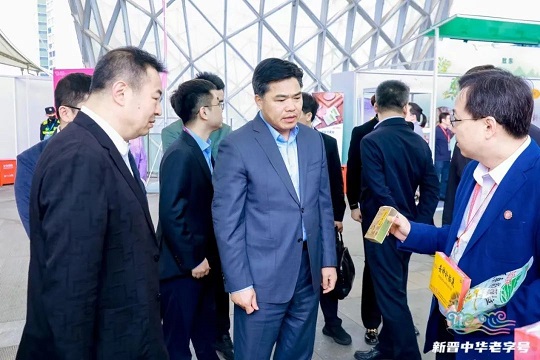 國(guó)家商務(wù)部黨組成員、副部長(zhǎng)盛秋平(中)等蒞臨廣藥星群公司展位