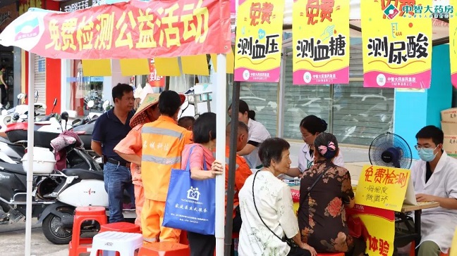 公益捐贈(zèng)活動(dòng)結(jié)束后,為更好落實(shí)對(duì)環(huán)衛(wèi)工人的關(guān)愛(ài),星群和中智為現(xiàn)場(chǎng)開(kāi)展慢病檢測(cè)、夏桑菊試飲的服務(wù),并在晚上開(kāi)展了文藝表演活動(dòng),為他們傳遞溫暖。