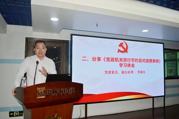 公司黨委委員、副總經(jīng)理李曉東結(jié)合分管工作,就深刻認識《條例》修訂的重要意義、勇于檢視厲行節(jié)約的著力點、國企干部如何落實厲行節(jié)約反對浪費等方面分享了對學(xué)習(xí)《條例》的心得體會。