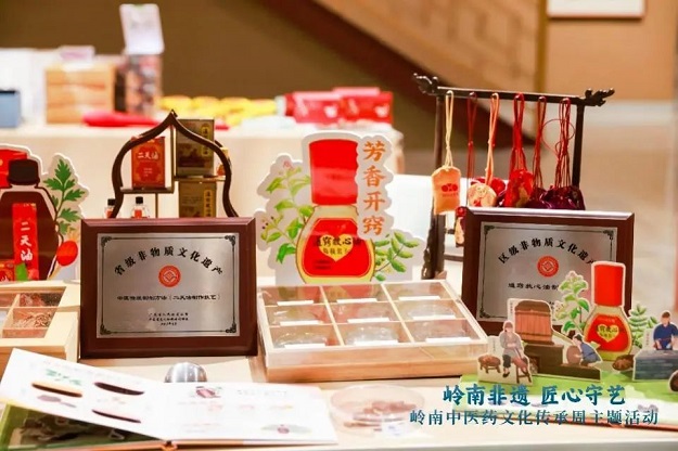 星群公司作為二天油制作技藝、夏桑菊制作技藝、通竅救心油制作技藝項(xiàng)目保護(hù)單位,受邀參與此次嶺南中醫(yī)藥文化傳承周活動(dòng)。其中二天油制作技藝作為省級非遺項(xiàng)目,其制作核心工藝獨(dú)門黑油煉制技術(shù),是嶺南制藥技藝的代表之一。夏桑菊制作技藝作為市級非遺項(xiàng)目,其配方源于吳鞠通《溫病條辨》的“桑菊飲”,此方劑曾廣泛應(yīng)用于嶺南瘟疫的治療,因此廣為流傳。經(jīng)百年傳承,該方劑加減化裁,形成夏桑菊制作技藝,為研究嶺南溫病歷史與中醫(yī)傳統(tǒng)制劑方法保留下重要資料。區(qū)級非遺項(xiàng)目通竅救心油制作技藝,是根據(jù)中醫(yī)“不通則痛,通則不痛”的原理,源自宋代名方蘇合香丸,采用蘇合香、沉香、乳香、檀香等香藥,通過茶油浸潤提取制成,必要時(shí)可以內(nèi)服。