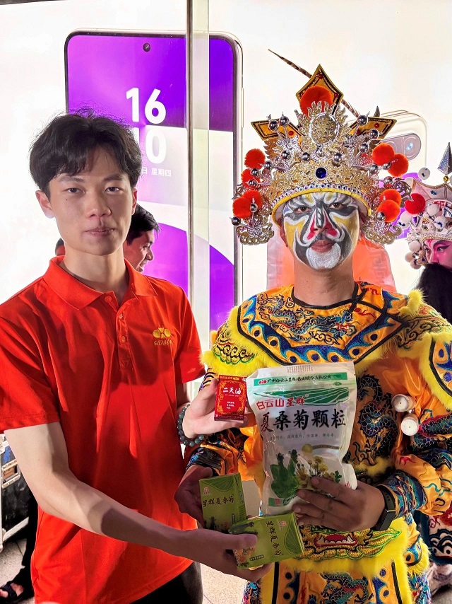 星群夏桑菊制作技藝的配方源自清代《溫病條辨》“桑菊飲”,歷經(jīng)百年,方劑加減化裁,劑型由傳統(tǒng)湯劑到片劑再到如今便于攜帶沖泡引用的顆粒劑型,不僅能清肝明目還能緩解表演勞累與燥熱;創(chuàng)制于1915年的二天油制作技藝,其滴水成珠的傳統(tǒng)黑油提煉標(biāo)準(zhǔn)傳承至今,提神醒腦的功效為表演者注入持續(xù)活力。讓中醫(yī)藥非遺與民俗非遺完成了一次溫暖對(duì)話。