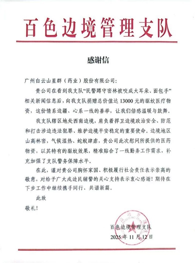 在祖國南疆的邊境線上,沒有繁華喧囂,只有日復(fù)一日的堅守;沒有驚天動地的壯舉,卻有“面包手”撐國門、“大耳朵”護安寧的赤誠。邊防民警們把青春獻給邊疆,把安危置之度外,用每一次巡邏、每一次偵查、每一次堅守,詮釋著“為國戍邊”的奉獻精神 —— 他們是蚊蟲叮咬下仍咬牙堅持的勇者,是高溫酷暑中仍步履不停的守護者,是夜幕降臨時仍警惕守望的國門衛(wèi)士。星群公司此次慰問,不過是社會各界致敬這份奉獻的一個縮影:我們或許無法替他們直面風雨,但愿用最實用的保障,為他們驅(qū)散蚊蟲、擊退暑熱,向每一位以青春赴使命、以熱血護家國的邊防民警致敬!愿這份跨越山海的牽掛與支持,化作他們戍邊路上的堅實后盾。