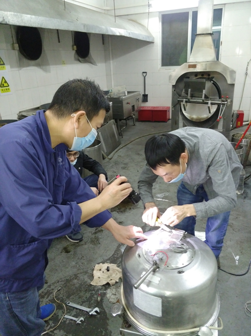 4月11日星期六,因疫情影響而停工三個多月的從化星珠黑油車間復工,早上炒藥機炒完第一鍋艾葉炭后,突發(fā)故障,設備溫度顯示異常,打不著火,經現場維修工檢修后仍然不能排除故障,生產陷入停頓。上午11點14分,設備工程部機修車間接到故障通報,故障就是命令,機修車間馬上安排人員趕往從化星珠檢修。