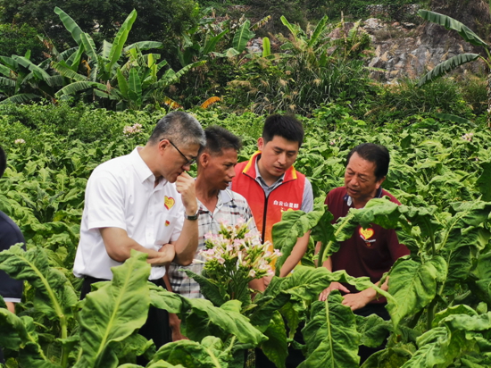 集團(tuán)楊軍總經(jīng)理(左一)到徑口村煙葉種植基地調(diào)研