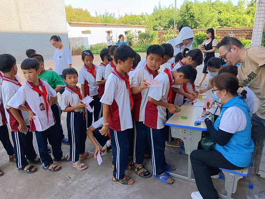 講師們還帶領(lǐng)大家體驗(yàn)搓制夏桑菊顆粒,指導(dǎo)制作“夏桑菊書簽”及“二天油中藥香囊”。這次沉浸式的研學(xué)公益課堂,讓全體學(xué)生感受了中醫(yī)藥文化及星群非遺文化的魅力,更以寓教于樂的方式在孩子們的心中播下了中醫(yī)藥文化傳承的種子。