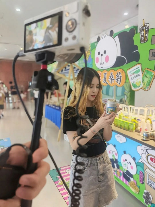 活動(dòng)現(xiàn)場(chǎng),吸引了來自全國各地的游客,還有不少網(wǎng)紅小姐姐小哥哥前來直播打卡。主播阿煩寶進(jìn)行了廣東專屬“冰廣式”現(xiàn)場(chǎng)測(cè)評(píng),驚呼:“泰褲辣!涼茶印象中苦苦的不太能接受,這種創(chuàng)新冰廣式比想象中還好喝,易拉罐式樣的也很潮很好看。”