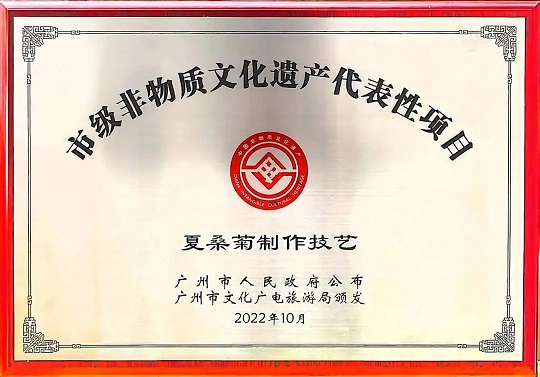 2022年,白云山星群“夏桑菊制作技藝”作為傳統(tǒng)醫(yī)藥類項(xiàng)目,入選“廣州市第八批市級(jí)非遺代表性項(xiàng)目”。