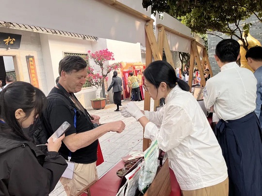 此次活動(dòng),旨在通過實(shí)地參觀和體驗(yàn),讓國(guó)際友人更加深入地了解廣州的中醫(yī)藥文化,感受其深厚的歷史底蘊(yùn)和現(xiàn)代價(jià)值?;顒?dòng)現(xiàn)場(chǎng),星群“三非遺”的傳統(tǒng)技藝被外賓們吸引,紛紛圍觀詢問各項(xiàng)產(chǎn)品。