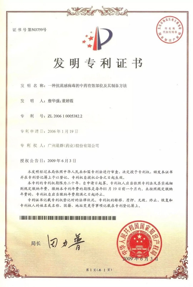 早在2009年,白云山星群已與香港科技大學(xué)合作研究,用分子生物學(xué)的方法揭示了夏桑菊顆粒防治禽流感的作用。經(jīng)科學(xué)研究,以香港科技大學(xué)詹華強(qiáng)教授為首的研發(fā)團(tuán)隊(duì),證實(shí)“星群夏桑菊”配方有效部分成分具有殺滅甲型流感病毒H3N2亞型、高效病性禽流感病毒株H5N1亞型和乙型流感病毒株的作用,并獲得中國(guó)發(fā)明專利的授權(quán)。
