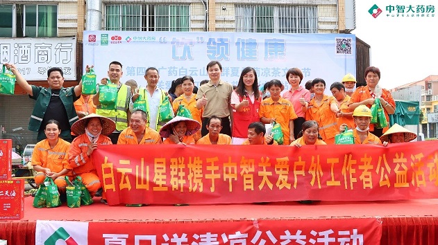 8月24日,在中山市港口鎮(zhèn)黨委書記的見證下,星群公司粵西大區(qū)許喜濤帶領(lǐng)中珠江聯(lián)絡(luò)處人員在中山市港口鎮(zhèn)攜手中山市中智大藥房連鎖有限公司開展第四屆廣藥白云山星群夏桑菊涼茶文化節(jié)暨關(guān)愛戶外工作者公益活動(中山站),星群公司總經(jīng)理賀慶、中智公司總經(jīng)理沈嫚娜及港口街道負責(zé)人一并出席活動。同時,白云山星群準備了一系列的夏桑菊涼茶等消暑解渴的降溫物資,贈予中山港口鎮(zhèn)環(huán)衛(wèi)站的工人。環(huán)衛(wèi)工人們對白云山星群及大參林的關(guān)懷表示了衷心的感謝。