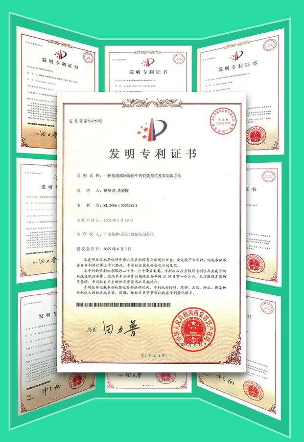 近年來,白云山星群不斷對星群夏桑菊展開深入研究,迄今已涌現(xiàn)10余項(xiàng)高質(zhì)量專利成果,其中包括“一種抗流感病毒的中藥有效部位及其制備方法”專利、“夏桑菊提取物在抑制人類冠狀病毒中的應(yīng)用”專利、“夏桑菊在制備防治手足口病的藥物中的新應(yīng)用”專利……專利矩陣夯實(shí)了星群夏桑菊顆粒劑的核心產(chǎn)品競爭力。
