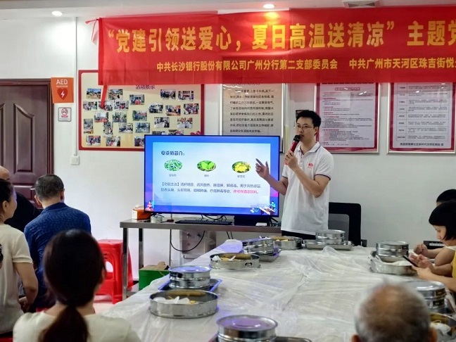 首場(chǎng)活動(dòng),夏桑菊制作技藝傳承人、星群公司研發(fā)博士張郁林為居民介紹了嶺南經(jīng)典涼茶——夏桑菊的歷史和制作技藝,并且在科普課程中,還介紹了嶺南中醫(yī)藥文化的相關(guān)知識(shí)、二十四節(jié)氣養(yǎng)生知識(shí)、藥材辨識(shí)、涼茶制作技藝及現(xiàn)代工藝等相關(guān)知識(shí)。同時(shí),還在現(xiàn)場(chǎng)演示了夏桑菊顆粒的制作流程。