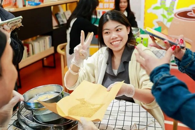 在夏桑菊顆粒制作體驗(yàn)區(qū),在工作人員的指導(dǎo)下,市民朋友們體驗(yàn)從涼茶到夏桑菊顆粒制備的成粒、過篩過程。成功完成體驗(yàn)的市民,現(xiàn)場試飲夏桑菊飲料,體驗(yàn)收獲感滿滿。